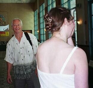 Elaine finally headed for bed a bit after 11pm. I was comfortably settled so stayed put…I was supposed to attend a writer’s get together in CJ’s room…but…ah well. At one point I ended up sitting there alone with Kristian Sorensen who informed me that he was now officially unattached. Take note, ladies! Shadow returned and joined us, then Deb buzzed back into the room around midnight…she’d been party hopping, and insisted we all go downstairs where there was some dancing going on. Kristian wasn’t interested, and she told him that he had a choice, be bored up here, or go downstairs and have fun. He gallantly said that here he was, sitting and talking to three beautiful women, he was already having a great time. But, Deb’s enthusiasm finally prevailed and we all trooped downstairs and over to the convention hall. Dancing ensued, Kristian managed to get Shadow out on the floor for a set of dancing…then the DJ gave it up for the night. Next it was off to the anime screening room where someone was showing the Rocky Horror Picture Show, complete with off-color narration, but without props. Well, we didn’t know it was going to be happening, so no one was prepared. I finally gave up the fight to stay awake sometime after 0145 and headed off to bed. I later learned that Deb had led the remainder of the group party hopping again, and that Kristian had peeked into the PREY writer’s suite several times, finally bringing his whole group in with him! We teased him about that on Sunday.