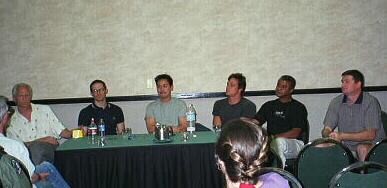 Sunday came and passed in a haze. I was still on cloud nine from Saturday! We talked to various fans, coerced Kristian Sorensen into signing a ‘PREY’ petition to send to Warner Brothers, and generally hung out. We packed things out about 1600 and retreated to the PREY Meeting suite for a wrap up discussion. AgamemCon is dead, and we need to find a new location for next year. There was a great deal of enthusiasm about trying WorldCon in San Jose in 2002. It’s over Labor Day weekend. While it is a huge con, it is a very important one. And if we get into negotiations with the con staff soon, we might be able to get a lot of publicity between now and then…this is almost more important that what we could do at the con itself. SciFi fans, writers, producers, actors, and assorted media from the world over visit the WorldCon site.