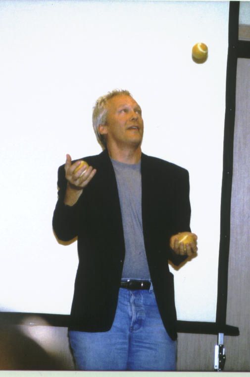 produced the traditional trio of juggling balls and started tossing them to him -- much to
