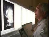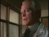 Robert remembers the crowd of bus passengers he'd triaged. The girl was dying, and he tried to make her comfortable by increasing her morphine dosage, which probably robbed her of the last twenty minutes of her life. Mr. Peattie believes she could have been saved if he had been there. When Robert returns to treating his wife, she's mysteriously burned to death in the radiation chamber during the MRI. The word "Theef" is burned into her chest.Robert, Scully and Mulder discuss the confrontation with the angry father. His daughter, treated as a Jane Doe, was named Lynette Peattie. Scully and Mulder search for her grave, and find an empty coffin. Meanwhile Mr. Peattie's landlady enters his room while he’s gone. She is looking for a poultice that Peattie had been making for her. She discovered a skeleton in his bed, and called the police. By the time Mulder arrives, Peattie has cleared out.
