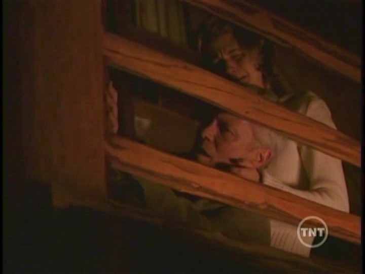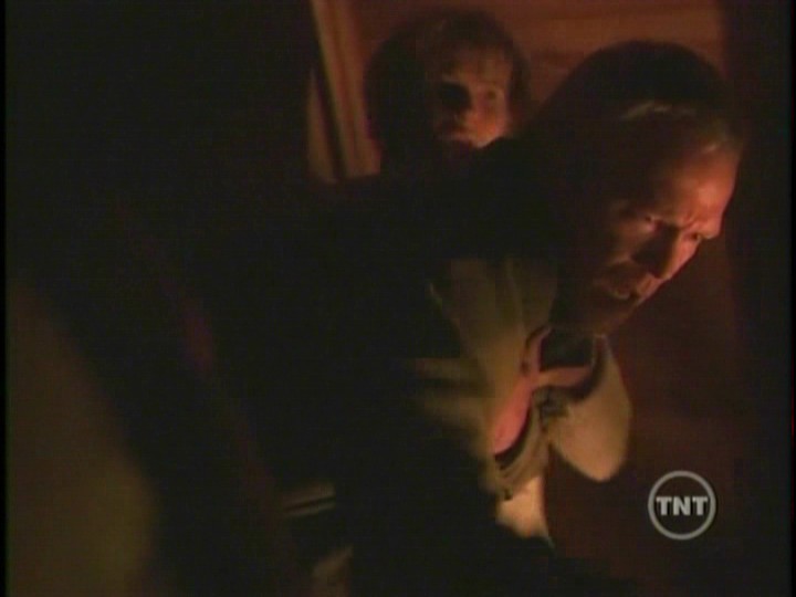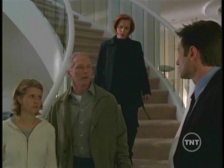 Inside the cabin Scully becomes blind. With gun drawn, she shoots at Peattie as he breaks in. He knocks her aside and heads upstairs where Robert and his daughter are sitting on the floor of the landing. Robert try’s to convince Peattie that he did everything he could for his daughter. Peattie has another cloth doll and sticks a knife into its heart. Lucy screams as Robert falls over grabbing his chest.Mulder arrives at the cabin and finds the hex doll that Peattie used on Scully. When he pulls the pins from the doll’s eyes, Scully can suddenly see. She shoots Peattie before he can kill Robert and his daughter.